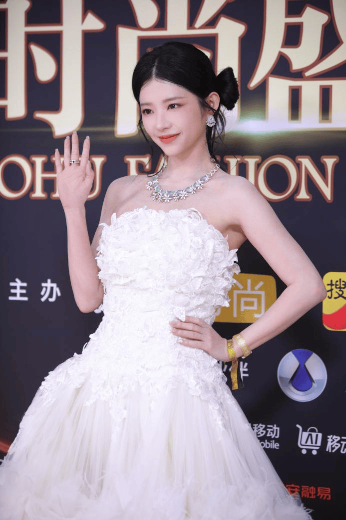 抹胸立体花朵军服亮相搜狐时尚盛典何蓝逗(合心流@何蓝逗)身着白色,配时尚可爱的发型蓬松薄纱裙摆搭,的气质尽显喜悦元气。